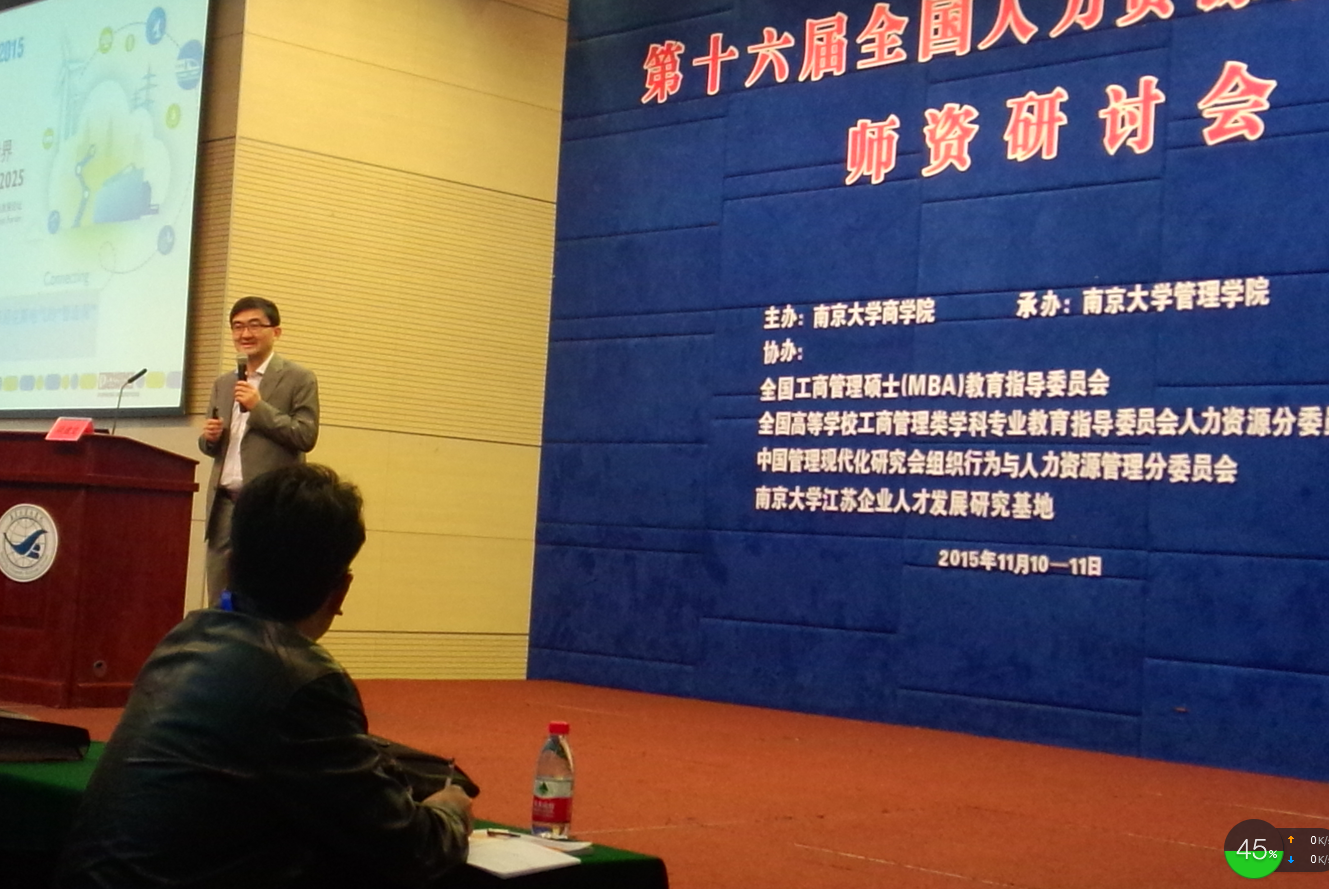 由全国工商管理专业学位研究生教育指导委员会、教育部高等学校工商管理类学科专业教学指导委员会、中国管理现代化研究会组织行为与人力资源管理分委员会、南京大学江苏企业人才发展研究基地委托,南京大学商学院主办,南京大学管理学院承办的第十六届全国人力资源管理课程师资研讨会20151110-12日在南京大学圆满结束。本次会议吸引了来自厦门大学、西南大学、浙江大学、兰州大学、上海交通大学、西安交通大学、西北农林科技大学等一百多所高等院校150多名人力资源管理的教师、学者参加研讨。我作为德赢官网MBA及工商管理本科人力资源管理课程主讲老师受邀参加了本次研讨会,现将两天会议的收获与大家共享。