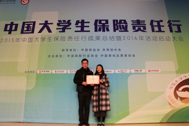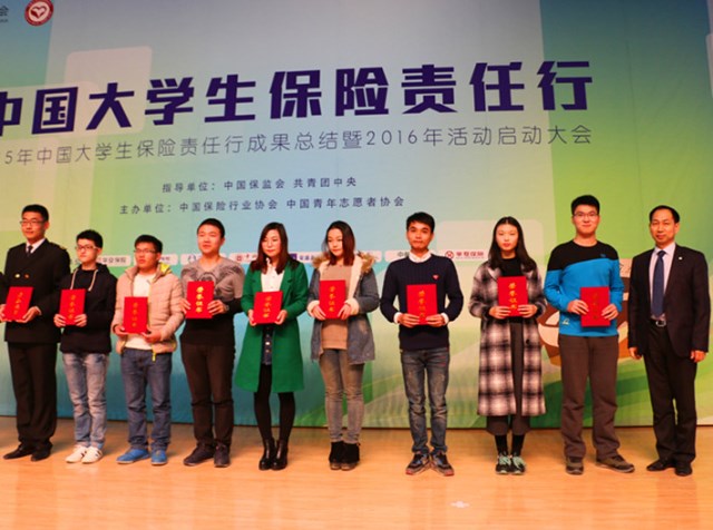 2015年12月30日,在中国保监会、共青团中央的指导下,中国保险行业协会和中国青年志愿者协会共同主办的大学生保险责任行成果总结大会在中国人民大学举行。会议现场对专项活动优秀社会实践团队进行了表彰,全国共有三十支队伍获奖,其中包括金奖十支,银奖二十支,德赢官网入选团队—经管学院“保险下乡志愿队”实践团队获评金奖。