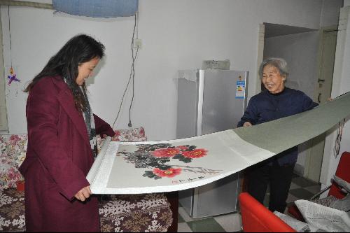 每到一位离退休教职工家中,学院领导向他们送上慰问信、慰问金及节日的问候,并与他们进行亲切的谈话。在交谈中,领导们询问了退休教职工的身体及生活近况,而且与他们一起回顾了学院的发展和取得的成效,肯定了他们为学院发展做出的贡献。此外,领导们还耐心聆听了他们的宝贵意见和建议并畅谈了今后学院的工作思路和设想。在慰问活动中,离退休教职工们纷纷感谢学院对他们的关心和照顾,他们愉快地追忆起过去的工作经历,同时也对学院未来的发展寄予殷切的期望。李淑英老师还将她自己画的两幅牡丹图赠与学院。