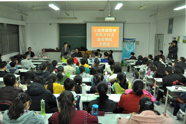 为2015级学生专业分流填报志愿提供建议,使其明确自身发展方向,德赢官网于3月29日晚在北校区八号楼举办土地资源管理专业宣讲会。夏显力教授,李世平教授,赵凯教授,南灵副教授等10名教师出席,工商管理学类专业学生200余人参加。