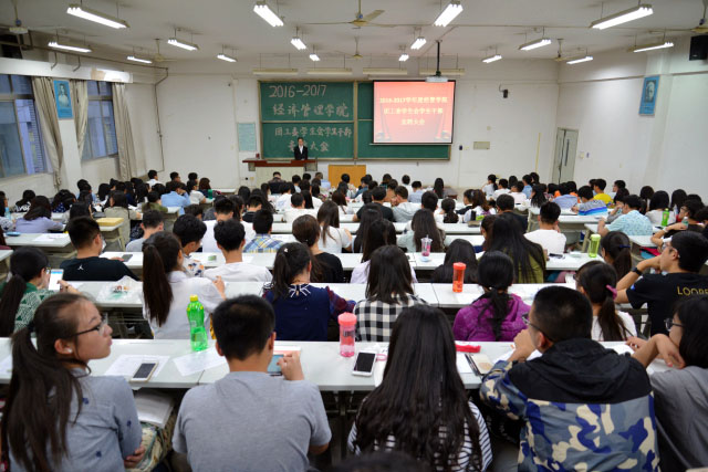 5月23日晚,德赢官网于北校区8T12教室举行2016-2017年度团工委学生会学生干部竞聘大会,学院党委副书记温晓林、学工办全体老师出席,200余名学生干部到场。
