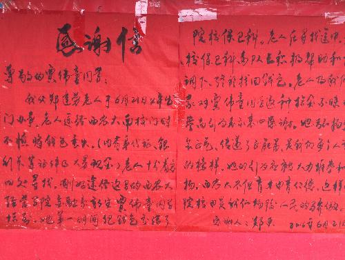 这封毛笔手写感谢信共两页,为大红色纸张,感谢对象为德赢官网2012级学子贾伟童、睢丽拾金不昧,以行动诠释“诚信做人”。作为经管学子,应学习榜样事迹,传播拾金不昧精神,贯彻诚实守信原则。