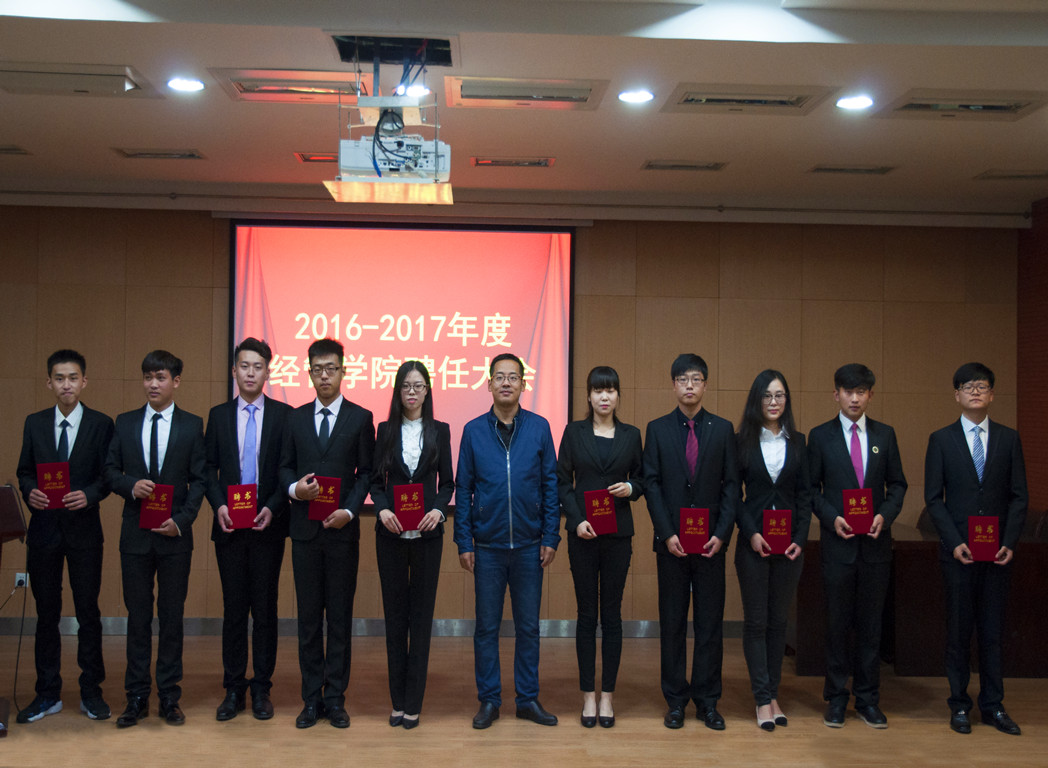 为做好学生干部的传帮带工作,帮助新一批学生干部更好地开展团工委学生会的工作,近日,经管学院于北绣南报告厅举办2016-2017学年学生干部聘任大会。团工委书记梁子龙及各年级辅导员出席此次大会,全体团学干部、学院各队队长及2016级新生助理班主任参加。