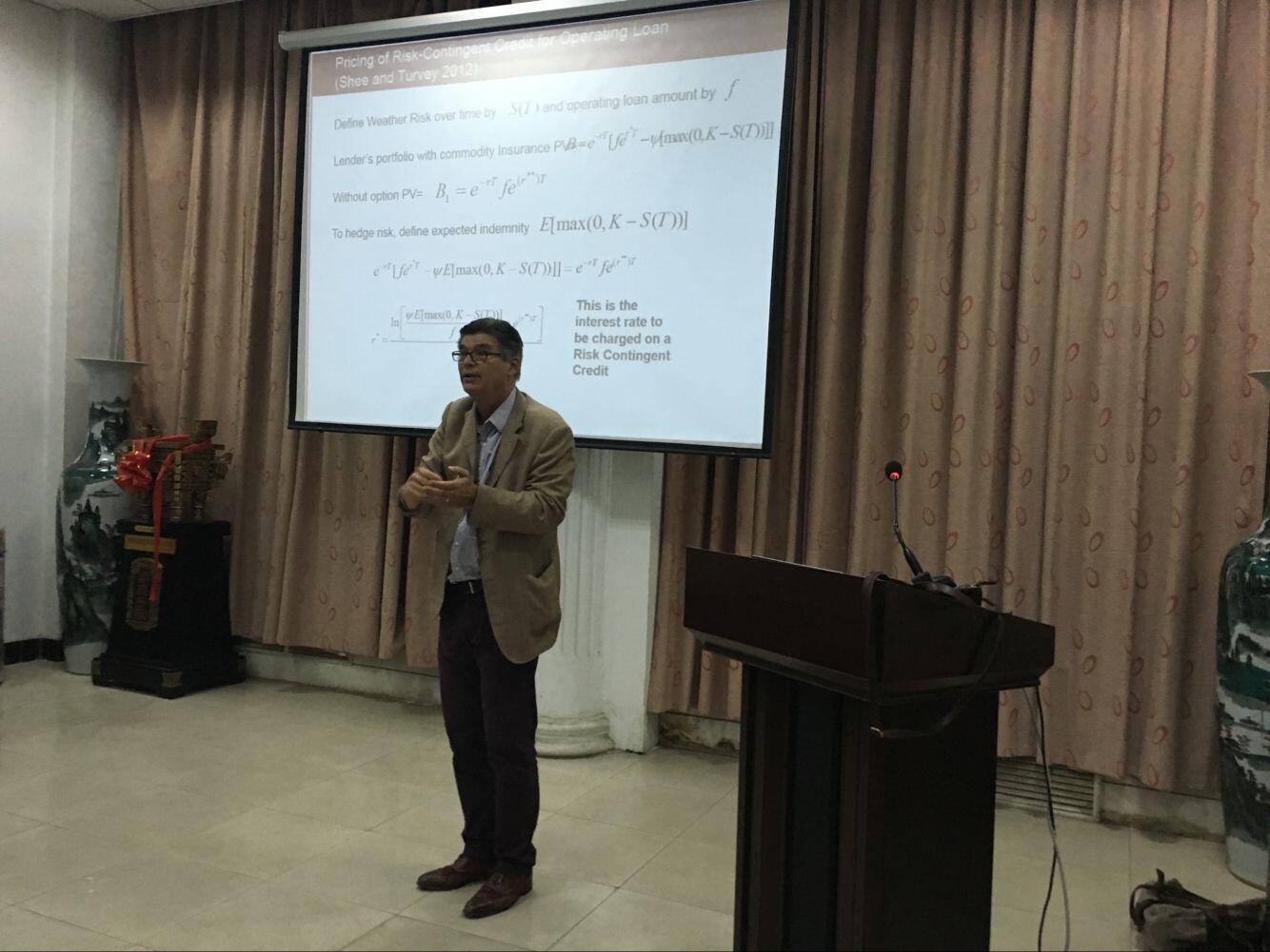 27日,Turvey教授和Ulf博士应邀在601会议室为德赢官网部分青年教师和博硕士研究生分别作了“Insuring Agricultural Loans with Risk-Contingent Credit”和“How does asymmetric information in individual microfinance”的学术报告,回答了师生的相关提问,并就相关研究领域的热点问题与德赢官网师生进行交流探讨。两位专家开放的授课风格,前瞻的研究视角,新颖的计量方法,使与会师生深受启发。
