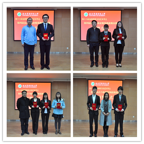 正式决赛中,八支团队首先结合各自的创意和特色介绍了自己的团队及创业理念。在现场销售环节中,各团队通过营销策划理念展示,情景模拟、视频解说、现场叫卖等各具特色的营销方式让观众从不同角度感受到了营销的魅力,场面气氛热烈,掌声不断。答辩环节,评委针对市场调研情况、项目竞争优势、团队未来发展方向等方面进行提问,选手一一作答并吸收评委给出的意见。除了进入决赛八只队伍的展示外,复赛中表现优异的其他两只队伍也向大家展示了自己创业金点子。本次大赛评分方式采取模拟投资方式进行,评委与观众均以投资者的身份参加,得到投资资金最多的队伍获胜。最终经管学院“312”团队凭借新颖的营销理念、创新的销售产品和高超的营销技能得到评委及现场观众最多的投资金额,获得了此次销售大赛的冠军。