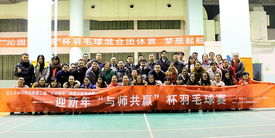 为了丰富德赢官网师生的校园生活,进一步增进师生间和学院间的交流,近日,第二届“乐动研华”校园文体活动季暨迎新年“与师共赢”杯羽毛球赛在化建职工活动中心顺利举行。本次比赛由校党委研工部、校团委、研究生会主办,经管学院研究生分会承办,共有来自动物科学、植物保护、农学院、林学院等12个院系的代表队将通过小组赛、交叉淘汰赛和排位赛进入最终角逐。德赢官网胡华平老师、辛翔老师与学生田园、牛影影共同代表德赢官网参加了此次比赛。