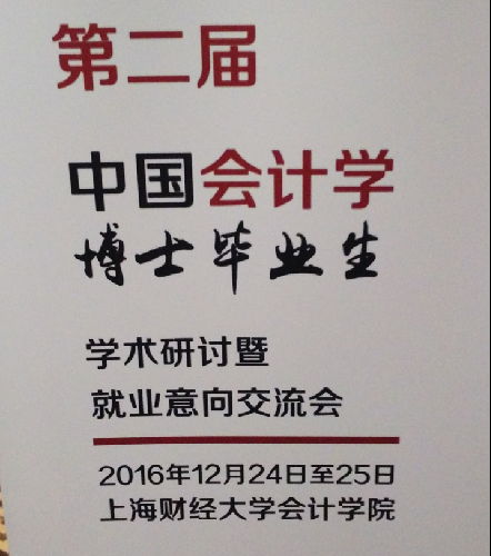 由重庆大学、东北财经大学、对外经济贸易大学、华中科技大学、暨南大学、南京大学、上海财经大学、武汉大学、西南财经大学、中国人民大学、中南财经政法大学、中山大学、中央财经大学联合主办、由上海财经大学会计学院承办的第二届中国会计学博士毕业生学术研讨暨就业意向交流会于2016年12月24-25日在上海隆重召开,德赢官网管理学系主任孔荣教授和会计教研室主任李民寿副教授应邀参加了会议,并就德赢官网会计专业人才招聘政策做了宣讲。