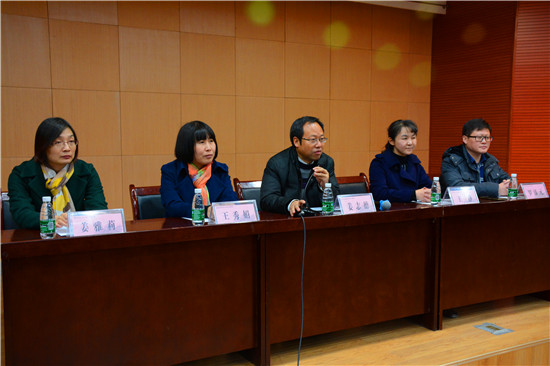 经济学系主任姜志德教授、金融教研室主任王静教授、经济学教研室主任姜雅莉副教授、贸易教研室主任王秀娟副教授、保险教研室罗添元讲师等老师出席南报告厅的经济学类座谈会。