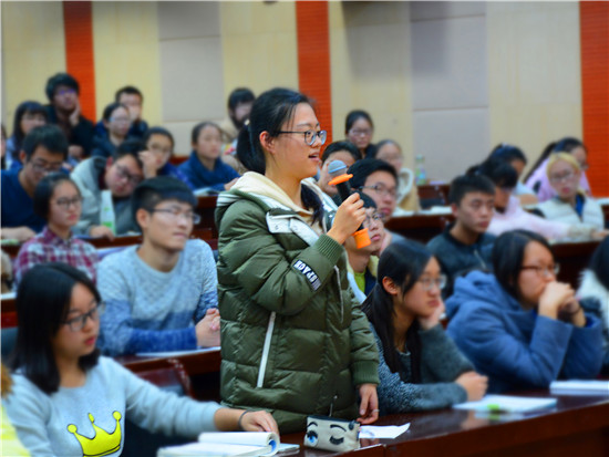 交流会最后的提问环节,同学们积极参与,提出关于专业实习内容、专业就业优势、保研考研、大二专业分流、大学生活学习工作关系该如何处理等问题,各位老师认真详细的解答了同学们的疑问,帮助他们走出误区,对各个专业的认识进一步加深,同时为同学们提出相关的建议。工管1602班的范赢月谈到自己的收获:“这次报告会使我真正了解到各个专业的具体情况,让我对下学期的专业分流有了自己的选择,我一定会为自己的目标努力奋斗、坚持不懈的。”