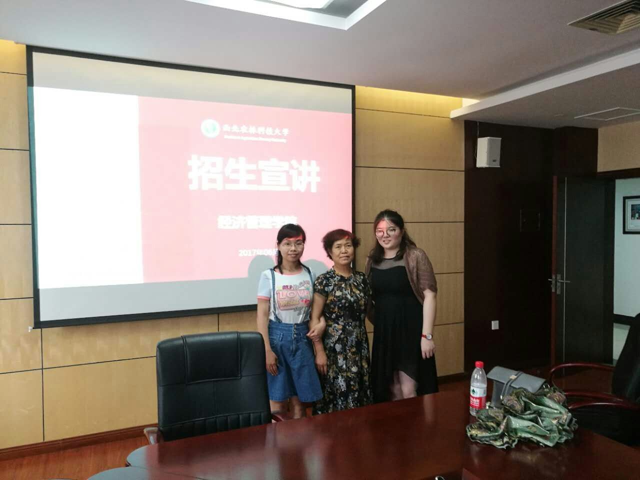 6月20日-22日,宣传团队抵达武汉,先后在华中农业大学德赢AC米兰、华中科技大学经济学院、中南财经政法大学工商管理学院宣讲,并向学生发放招生宣传资料。宣讲会上,韩杏花副教授以校宣传部制作的宣传短片为切入点,以生为本、热情洋溢且具有感召力的宣讲吸引了很多学生的报考热情,引来了师生的阵阵掌声。会后,学生对德赢官网学科特色、科研平台、研究生录取条件及奖助体系等进行了咨询。在中南财经政法大学,宣传团队还与工商管理学院副院长吴海涛、农林经济管理系主任邓远建、青年教师代表闫文收座谈,交流农林经济管理学科建设、研究生生源质量、培养方案、就业等方面的话题,并期待双方的进一步交流和合作。