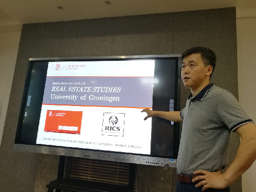 此外,刘博士就荷兰格罗宁根大学留学项目,特别是房地产专业的招生、培养、就业等情况进行了介绍,鼓励有兴趣的学生积极申请进行学术深造。西北工业大学的任洪浩副教授(2004~2011年在德赢官网土地资源管理专业进行本科和硕士学习,2015年10月取得格罗宁根大学房地产专业博士学位)参加了报告会,并通过自身在格罗宁根大学的学习和生活情况,与参会师生进行深入交流。