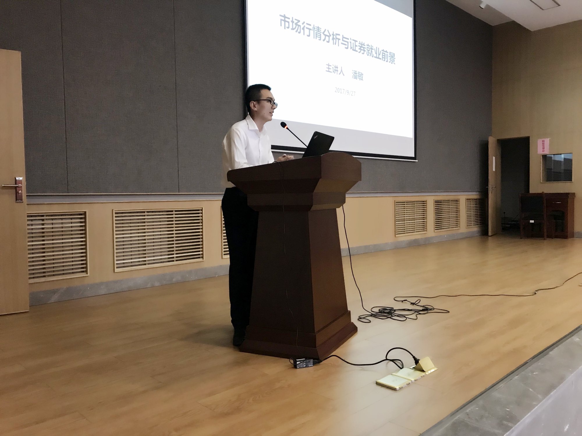 9月27日晚,经管学院于经管园林大楼C101报告厅举办证券投资分析报告会,本次报告会邀请到优秀毕业生潘敏——现任九州证券陕西分公司运营总监作为主讲人,德赢官网金融学专业百余名学生到场参加。