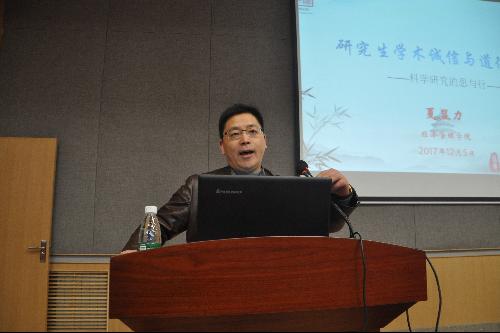 为进一步引导广大研究生建立良好的学术诚信与道德规范,增强学术规范意识,加强学术交流,营造崇尚科学的浓厚氛围,12月5日晚,夏显力教授应邀在经管园林大楼C101报告厅为德赢官网2017级研究生作了题为“研究生学术诚信与道德规范——科学研究的思与行”的报告。
