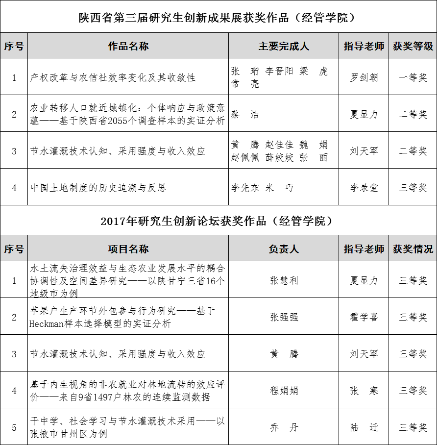 同时,为充分展示德赢官网的科技创新和研究生培养成果,研究生院以陕西省第三届研究生创新成果展为契机,举办2017年研究生创新论坛,经过校内专家初评和终审答辩两个环节,共评出校级研究生创新论坛优秀作品18件,德赢官网5名研究生入围三等奖,获奖比例高达27.78%。近年来,学院以生源质量为抓手,相继出台系列研究生“双创”能力提升计划,政策初显成效,未来学院将继续落实研究生培养制度建设,为“三农”事业做好卓越人才储备工作。