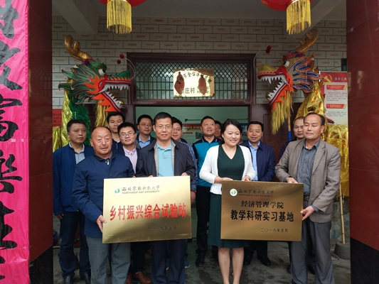 副院长夏显力受聘为新庄村乡村振兴综合试验站首任站长,并代表学院分别与宝鸡市金台区财政局局长令军、农业局局长王立权签订了新庄村乡村振兴综合试验站和教学科研实习基地建设合作协议,学院党委书记张岁平、院长赵敏娟一起为新庄村授牌。