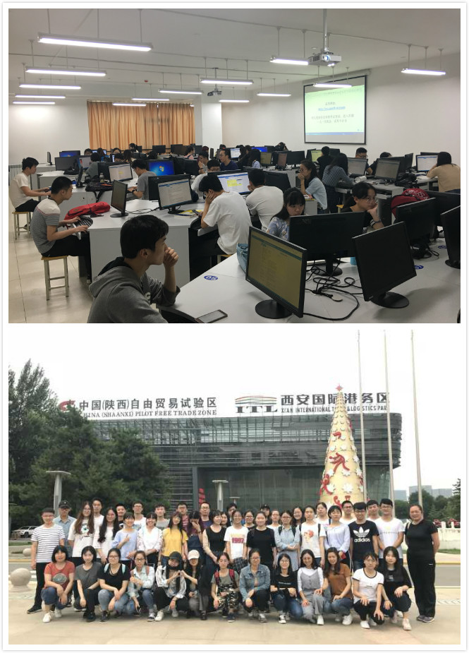 在实践训练方面,经贸易教研室老师的沟通与筹备,为学生安排了陕西省自贸区西安片区辖内的管理机构、国际贸易、国际物流、国际电商、进出口陆港等10余家有关部门及外贸企业进行参观学习。在贸易教研室老师的带领下,学生依次参观了西安国际港务区、京东物流西北区域分公司、陕西自由贸易试验区、中西部陆港金融小镇、西安公路港、西安铁路集装箱中心站、洋货码头、爱菊粮油应急物流基地以及红酒进口基地港等典型国际贸易企业,不仅丰富了学生的视野和格局,还增强了学生学以致用的能力,锻炼和提升了其创新意识和创新思维。