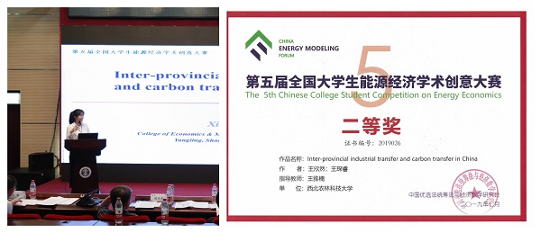 2019年7月5日至7月7日,德赢官网工商管理专业16级本科生王欣然、16级会计学专业本科生闫仪尊、王琛睿、罗鑫源、15级会计学专业本科生程艺阳在德赢官网工商管理教研室青年教师王雅楠指导下参加第五届全国大学生能源经济学术创意大赛。王欣然、王琛睿同学的作品入围决赛并在大会做了题为“Inter-provincial industrial transfer and carbon transfer in China”的报告,获大赛二等奖,奖金1000元。闫仪尊、程艺阳同学的作品获大赛三等奖。德赢官网获优秀组织奖,王雅楠老师获优秀指导教师称号。