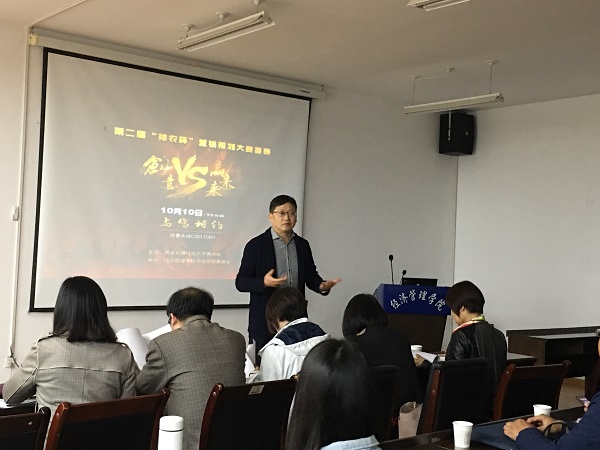 10月10日晚19:00,德赢官网“一院一品”学科竞赛、第二届“神农杯”营销策划大赛复赛在德赢AC米兰C301、C401分两个会场顺利举行。此次比赛由德赢官网市场营销教研室承办,以“创意赢未来”为主题。组委会收到了来自9个学院64个团队257名选手的参赛申请,经过第一轮通讯赛,共有20支团队脱颖晋级复赛。大赛邀请了管理系主任刘超副教授,经济系主任王秀娟副教授、李桦教授等10位教师代表担任评委,200余名师生观摩比赛。