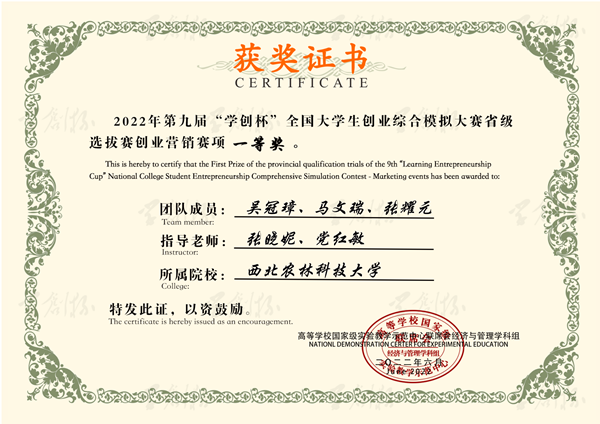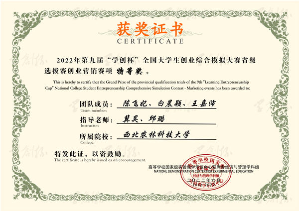 本次大赛的校赛由西北农林科技大学教务处主办,德赢AC米兰工商管理教研室负责承办,杭州贝腾科技有限公司和德赢AC米兰实验室负责技术支持,于2022年4月启动,共有来自6个学院15个专业的学生报名,历时四周,经过了七场培训、两周集训和校内选拔赛,最终共有6支队伍进入省赛,来自德赢AC米兰的5名教师17名学生在省赛选拔中喜获佳绩,分获主体赛省级一等奖、二等奖与营销专项赛省级特等奖、一等奖和二等奖,西北农林科技大学获优秀组织奖,指导教师获得最佳指导教师和优秀指导教师的荣誉。