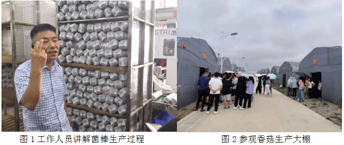 洛南县岭南生物科技产业示范园智慧工厂是国内一流、国际领先的食用菌香菇智能控制流水线生产,企业采用实现菌棒生产自动搅拌、自动装袋、连续灭菌、无菌接种、出菇培养等生产流水工序作业。同学们参观了菌包生产加工基地和香菇生产基地,对菌包的生产原料、加工流程、存储销售以及香菇生产进行了解;深入香菇生产大棚,对香菇的采摘、生产环境亲身体验。