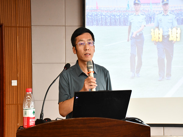 肖夑宇以“青春国防,莫负韶华”为主题,围绕“为什么要上大学”“为什么要军训”“为什么要吃苦”“为什么要守规则”四个问题,深刻阐述了新时代青年应当如何立大志、明大德、成大才、担大任;通过对大量史料的系统梳理和集中展示,带领同学们回顾了爱国主义在不同历史时期的内涵的,并结合社会现状,对如何在新形势下弘扬爱国主义精神提出思考;最后,用“志气、底气、骨气”三个词激励同学们要切实提升个人能力,强健体魄,锤炼意志,强化国家安全意识和爱国主义精神。
