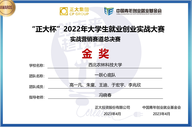 2022年“正大杯”大学生就业创业实战大赛由中国青年创业就业基金会与正大集团共同举办。“一跃心底”团队五名成员来自会计、金融等专业,参赛作品《秦潮预厨》立足千年陕菜,聚焦客群、市场、产品赛道等要素,围绕创意、创新、创业三个维度,将中国传统文化与项目有机融合,提供以线上小程序为主,线下体验店+前置仓为辅的“国潮风”专业化预制菜服务。大赛历时11个月,赛程从2022年5月开始,至2023年4月结束。团队在陕西省初赛、复赛,北方区赛,全国总决赛初评的多轮比拼较量中,经历脑力与智慧的碰撞,心态与耐力的考验,一路披荆斩棘,最终挺进全国总决赛并取得了喜人成绩。