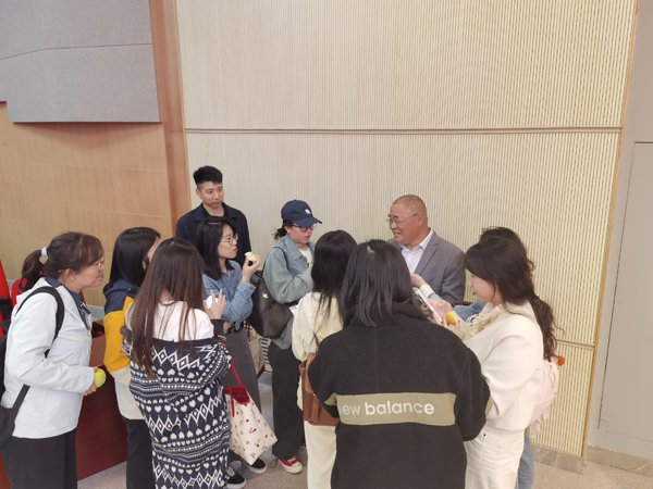 赵政阳教授团队自主选育的瑞雪、瑞阳、瑞香红优质晚熟苹果国审新品种,具有完全自主知识产权,填补了中国苹果品种品牌在世界上的空白,打破了“富士”独霸市场场面。赵教授首先和大家分享了“瑞阳、瑞雪、瑞香红”苹果的选育历程。他说:苹果基因特点决定了苹果品种选育是“海选”式的,“三瑞”苹果历经二十年持续筛选、观察、实验,才最终选育成功。期间经历的艰辛不言而喻,但当“瑞雪、瑞阳”苹果走进人民大会堂时,我有点意外,但同时我也是骄傲的。现场同学爆发出热烈的掌声,为带有“中国芯”的苹果,也为让苹果装上“中国芯”的科学家。赵教授结合“三瑞”苹果品种发展前景、市场表现同现场同学展开交流和探讨,他指出,中国“苹果产业发展进入一个新的历史阶段,新品种、新技术同新机制、新模式的结合必将催生出新的发展动力。