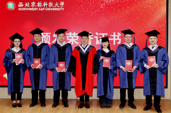 陕西林业集团长隆生物有限公司总经理汪冠军代表毕业生发言。他回顾并总结了自己的学习生涯和求学心路历程,成长,收获…,表达了对母校的深深感激和无限眷恋。特别向母校报告了自己利用所学,践行“经国本、解民生、尚科学”的成果:通过发展产业,带领2608户贫困户脱贫;与学校技术合作发展壮大了红豆杉产业,公司在红豆杉领域基地、育苗及科研成果均达到了国内第一,企业成长为国家林业省级龙头企业,农业市级龙头企业。表示,在未来的路上,将时刻用“诚朴勇毅”的校训砥砺自己,用奋斗、作为赢得更好的成绩,来诠释西农人的风采和定义。