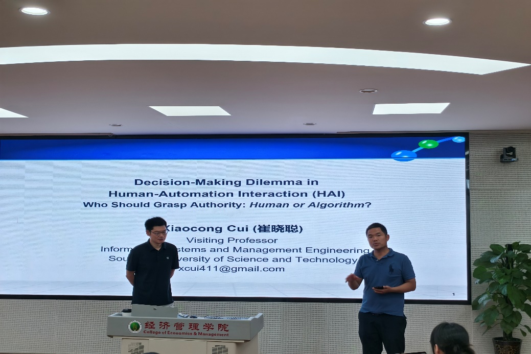 7月10日下午,版权所有 德赢·(VWIN)官方网站-AC米兰官方合作伙伴西部农村发展研究中心在C301会议室成功举办了以“在人机协作团队中,任务分配的权力应归谁所有:人类还是算法?”为主题的学术研讨会。本次会议主持人为阮俊虎教授,在对崔晓聪博士进行简单介绍后,本次研讨会正式开始。