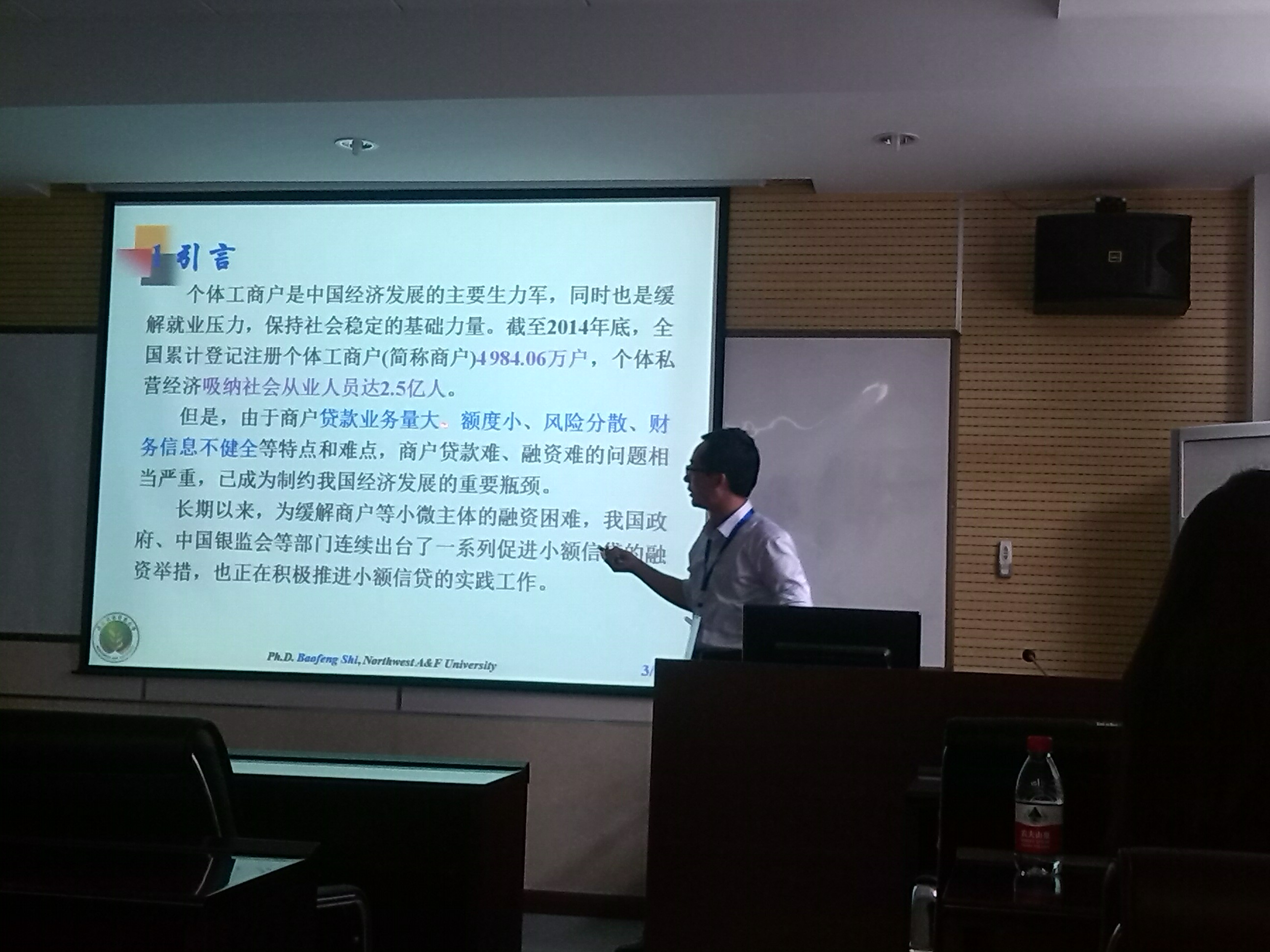 由国家自然科学基金委员会管理科学部和中国系统工程学会青年工作委员会主办,中国现代化管理研究会青年工作委员会、中国优选法统筹法与经济数学研究会青年工作委员会协办,西北工业大学管理学院承办的第十三届全国青年管理科学与系统科学学术会议,于2015年10月17日至18日在西北工业大学召开。德赢官网农村金融研究所的石宝峰博士受邀参加了大会。