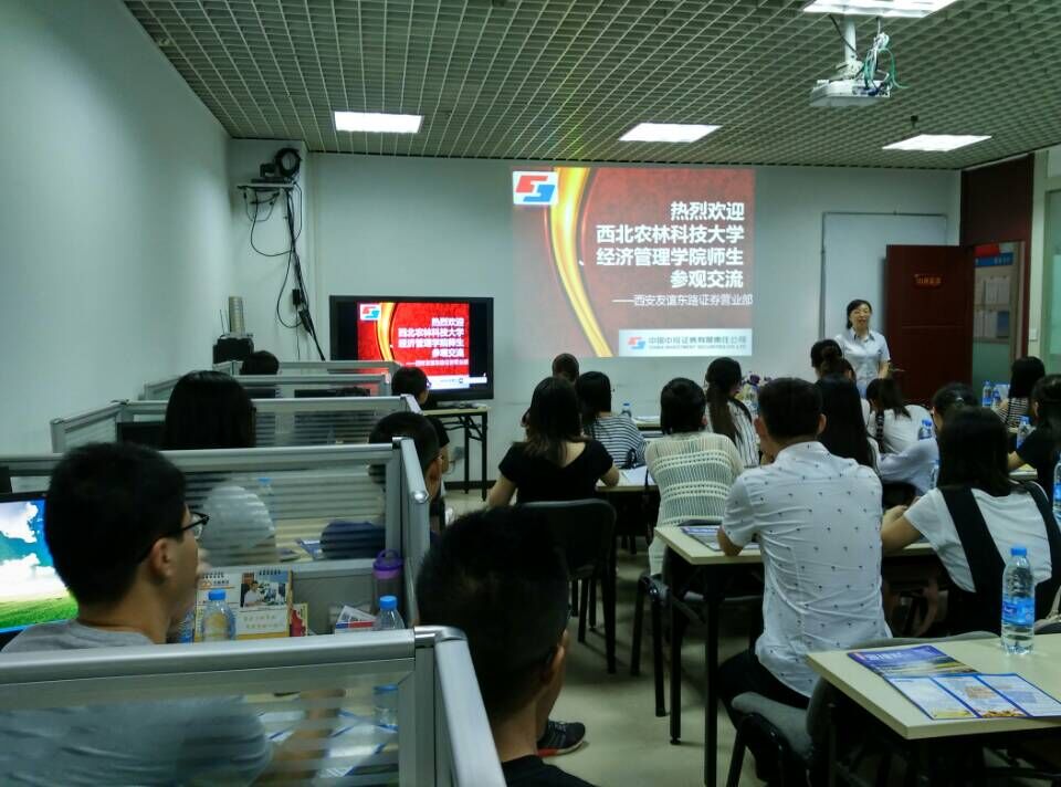 为加强校地合作,提高德赢官网金融硕士专业学位(简称MF)研究生的社会实践能力,9月7日,在牛荣副教授、罗添元老师以及石宝峰老师的带领下,经管学院2015级44名MF研究生赴中国中投证券西安友谊东路营业部、武功电子商务产业园区,进行了为期一天的教学参观实习。