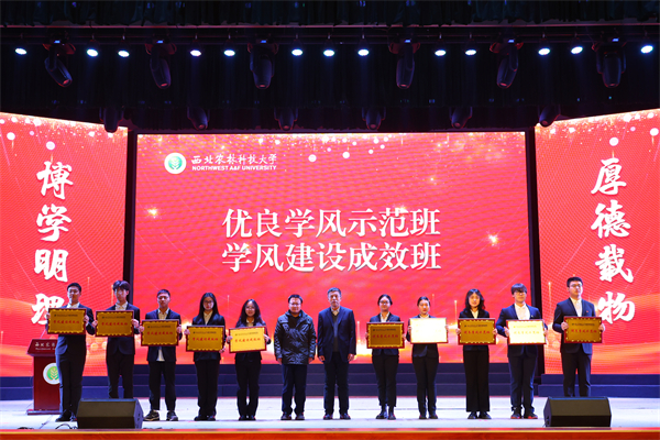 学院副院长刘军弟、组织员王赟为获评“优良学风示范班”和“学风建设成效班”的集体代表颁奖