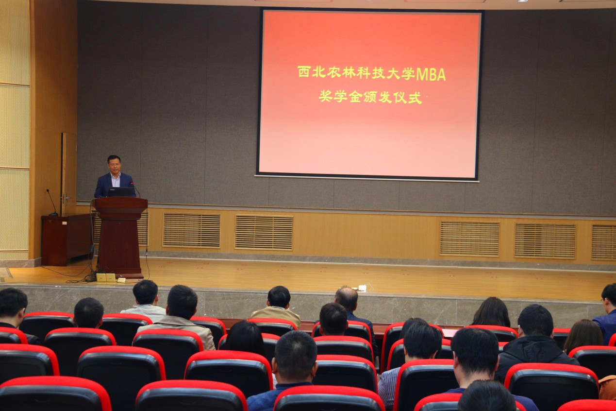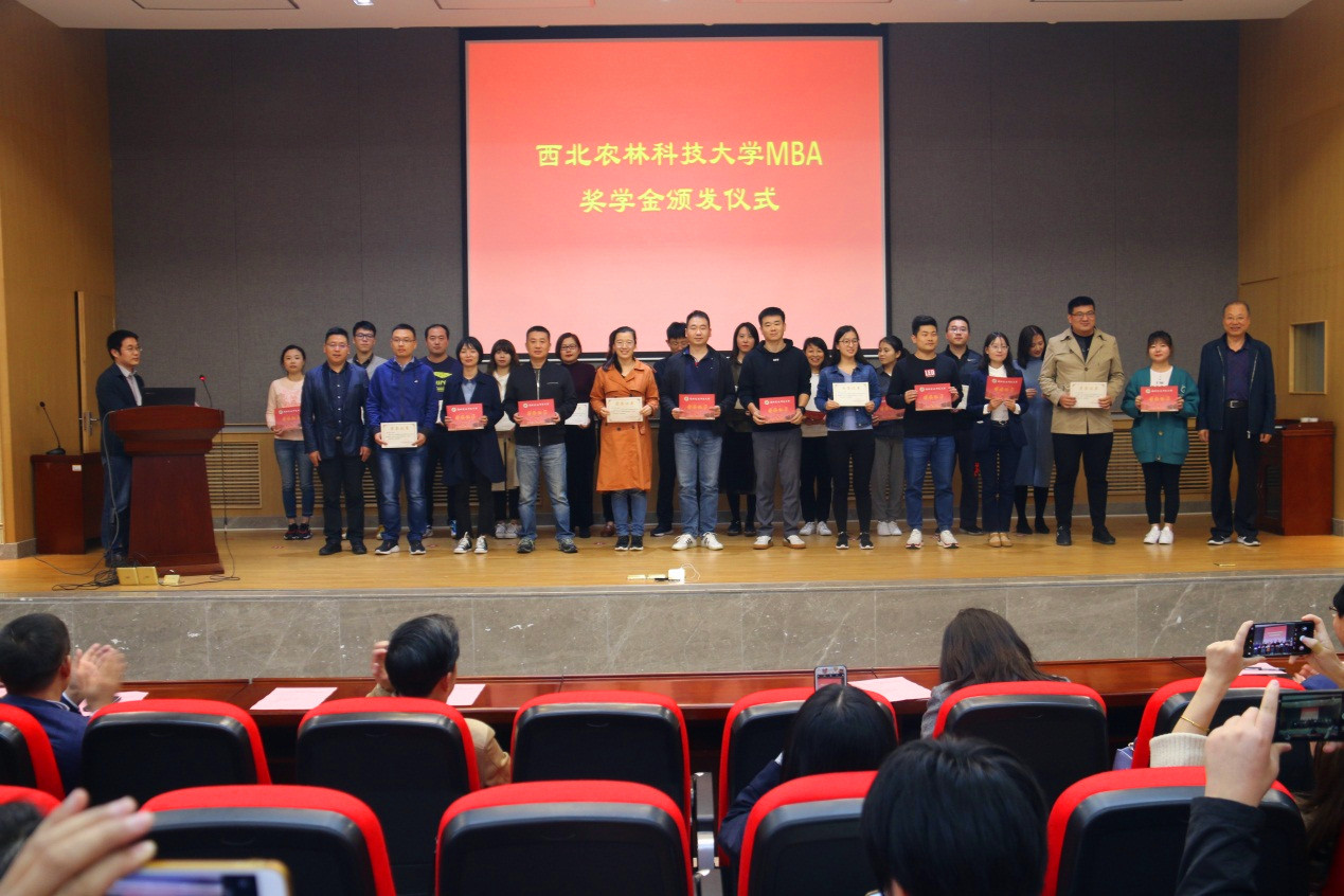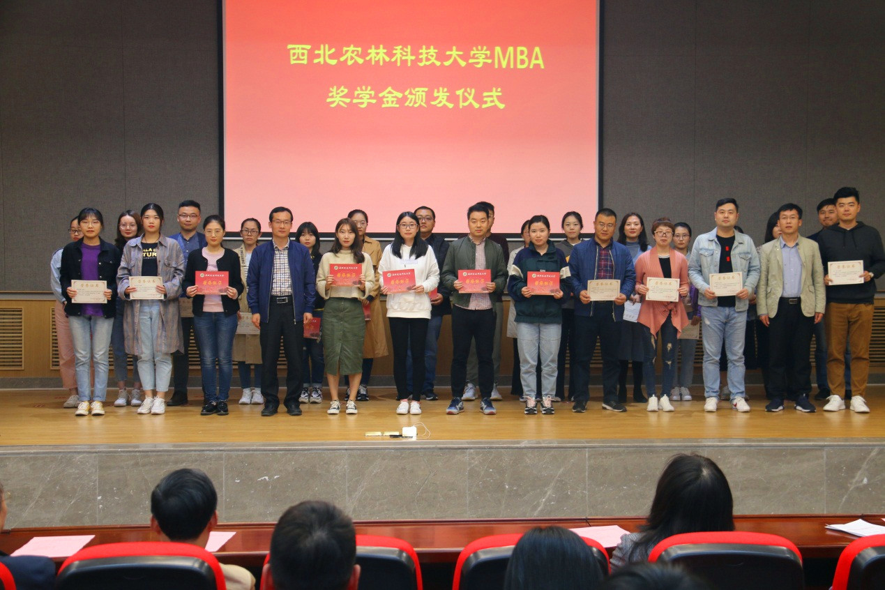 10月7日下午,西北农林科技大学2019级工商管理硕士(MBA)优秀生源奖学金颁发仪式在德赢AC米兰C101隆重举行。仪式由MBA教育中心副主任王军智主持。德赢AC米兰党委书记张岁平、副院长夏显力、副院长石宝峰、党委副书记张军驰、院长助理牛荣、MBA教育中心常务副主任孟全省和任课教师代表王礼力教授出席了仪式。