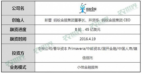 浙江蚂蚁小微金融服务集团股份有限公司(以下称“蚂蚁金服”)起步于2004年成立的支付宝。2014年10月,蚂蚁金服正式成立。