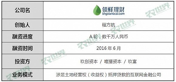 领鲜金融是中国第一家涉足土地经营权(收益权)抵押贷款的互联网金融公司,也是中国最早专注农业与农村的互联网金融企业。