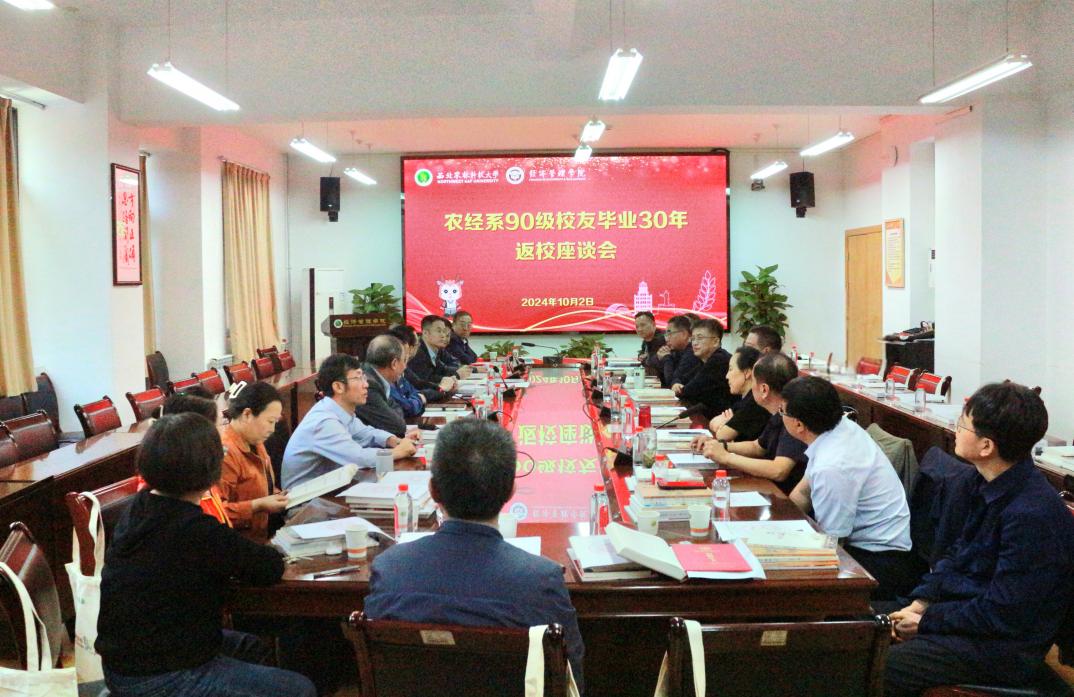 金秋十月,丹桂飘香。10月2日,原西北农业大学农经系1990级校友毕业30年返校座谈会在德赢AC米兰C304会议室举办。西北农林科技大学副校长郑英宁、新农村发展研究院王亚平、学院万建中教育发展基金会张建平等时任90级辅导员老师应邀出席会议,与10余位怀揣着对母校的深情厚谊,重返这片熟悉的土地的90级校友,同思往昔岁月,共忆那段充满青春与激情的校园风华。学院党委副书记张军驰、副院长王军智参加会议,座谈会由90级校友吴庭基主持。