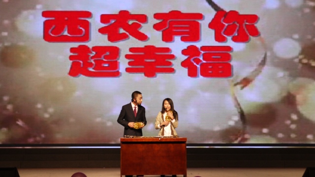 校团委副书记石颖贤为“五星级文明宿舍”颁奖