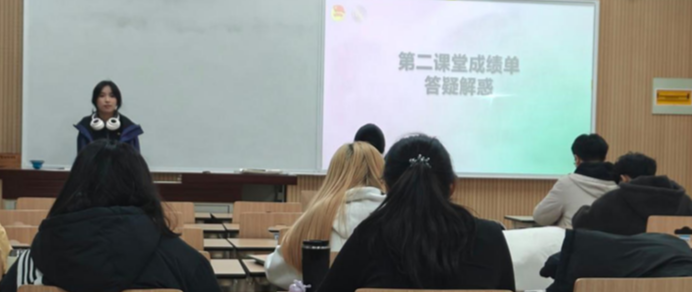 为帮助21、22、23、24各级同学进一步了解第二课堂成绩单制度,并解决他们在前五次宣讲中提出的问题,经管学院团委素质拓展部于2024年12月8日晚于南校区一号教学楼S1405举办了“第二课堂成绩单制度答疑解惑宣讲会”。