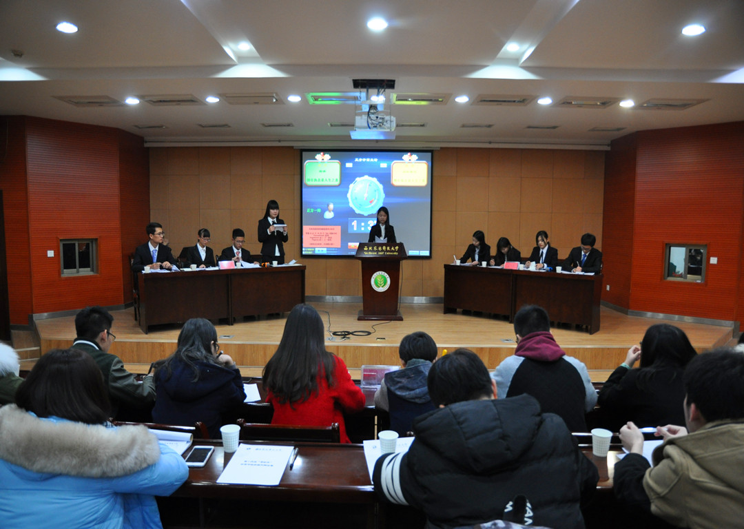 本次决赛辩题为“拥有执念是人生之喜或是人生之悲”,由工管1605、1606、1607班组成的“经纬队”与经济1604、1605、1606班组成的“说的都队”进行冠军的争夺。决赛按照常规辩论赛比赛规则,在开篇立论环节,正反双方辩手慷慨陈词,援举实例发表了对执念的看法。之后的驳论环节各辩手使出浑身解数,找出破绽并以此反驳对方。双方在攻辩环节互不退让,交替发言,灵活的思维和缜密的逻辑赢得观众的阵阵掌声。自由辩论环节,更是精彩万分,参赛队员唇枪舌战,旁征博引,字字珠玑,步步紧逼,力争短时间内为自己的队伍争取机会。正反双方的四辩在最后环节做了总结陈词,总结自己的观点与看法。观众也就自己对辩题的理解向辩手提出质疑和询问。激烈的辩论在观众们的叫好声中画上了句号。