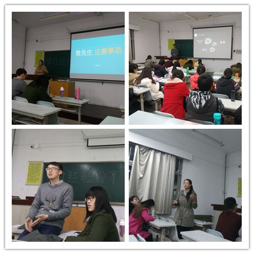 12月6日晚七点,在北校区8106教室,15级农经专业召开了以“保研与学习经验分享”为主题的经验交流会。本次交流会邀请到了经管学院农经党支部2013级几位保研的学长学姐来为大家传授学习经验。