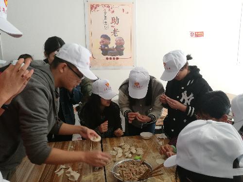 上午9点30 分,志愿者在幸福院门口集合,村长热情地接待了他们。随后,志愿者们在负责人的组织下,按照之前的分组积极地做着准备工作,一组志愿者清扫活动会议室,一组在会议室与老人聊天,一组去厨房筹备包饺子,最后一组则在进一步熟悉健康知识小讲座的宣讲内容。院子里到处都是志愿者忙绿的身影,大家紧张而有序的进行着自己的工作。志愿者热情大方地与老人拉家常,会议室也越发热闹起来。
