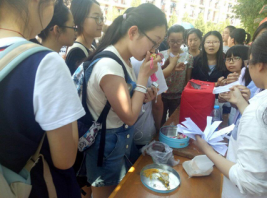 本次知识问答以抽题答题形式开展,中午12点活动准时开始,现场人头攒动、热火朝天,近百道题目在短短的30分钟内被抽空,参与答题的同学有的以自己牢固的基础知识答对所有题目,获得粽子、香囊、书签等精美奖品;有的则稍显逊色,只答对了部分题目,获得一份纪念品;还有同学不太了解端午节,拿到题目后仔细研究,并从工作人员处获取答案,他们中有人谈到:“来参加活动并不是为了拿奖品,而是想要多了解我们的端午节,同时也激励了我要多学习传统文化。”12:40左右活动顺利结束。