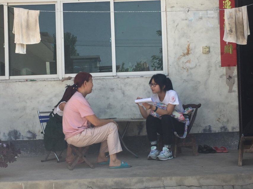 调研服务队通过问卷和走访对嵩县农村农民生活现状及扶贫情况展开调研。上午8时许,队员们乘坐城乡公交来到了距县城约27公里的大坪乡,并选定西源头村作为上午的调研地点。11名队员共分为5组,且每组都有来自河南本地的同学,保证了调研队员与村民们的交流不存在障碍。