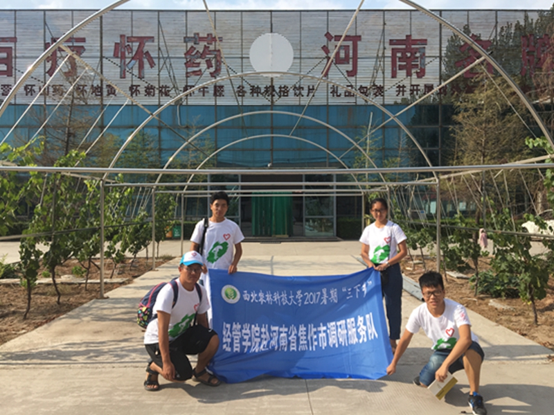 2017年8月10日,西北农林科技大学经管学院赴河南省焦作市调研服务队来到焦作市武陟县北郭蔡庄工业区进行三下乡调研,第一站队伍来到了四大怀药国家非物质文化遗产传承人孙树武先生所创立的企业——河南省百疗怀药科技开发有限公司,总经理孙瑞斌先生热情接待。