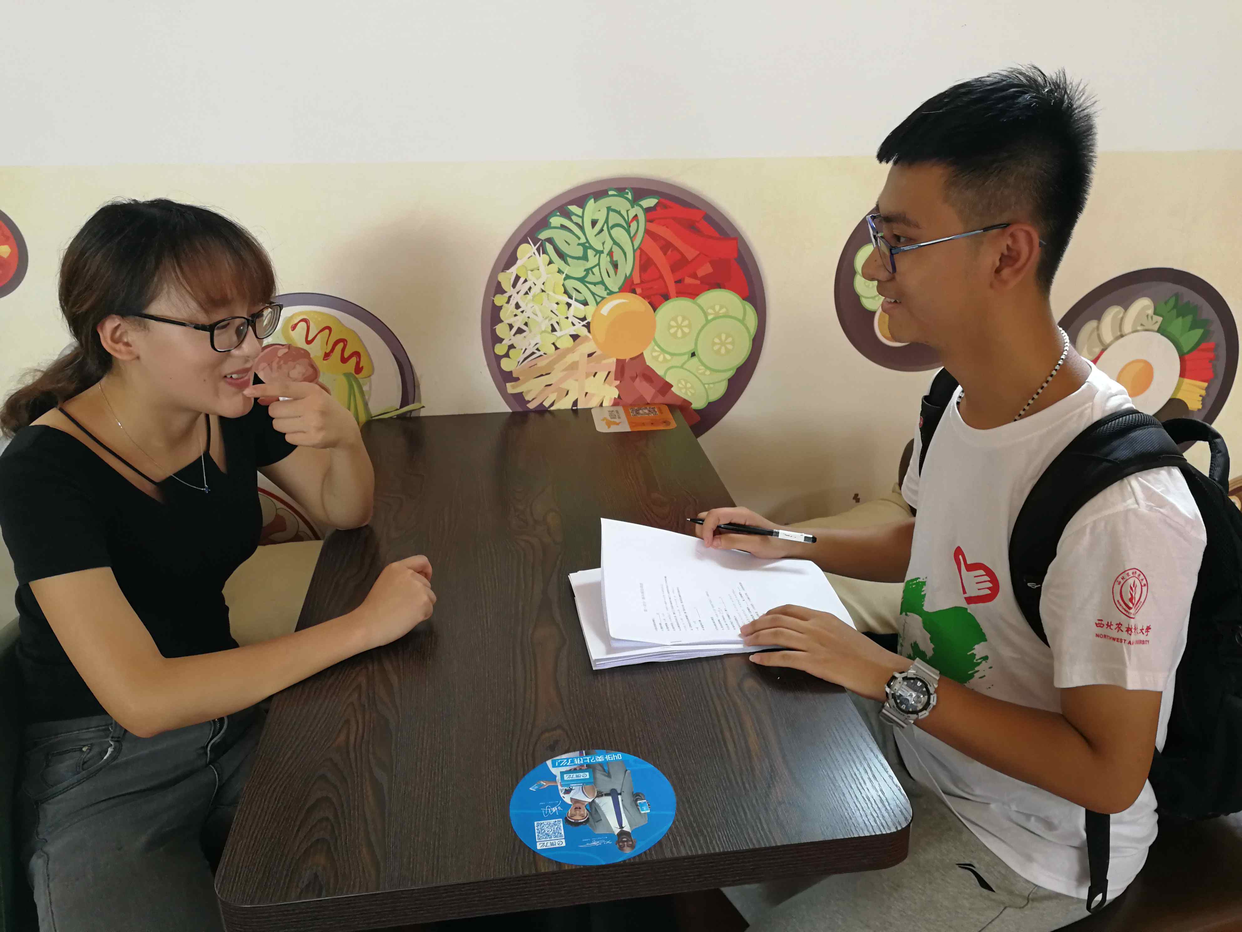下午两点,由于队员们上午有点劳累,于是就近在南校区的北门对一些商铺进行了调研,由于地处学校附近,顾客以学生为主,这些商铺大多从事餐饮业及服务业,且收入可观。商铺老板表示,“我们这地理位置好,大学学生也多,消费水平就被拉上去了,我们的日常收入就是这个店铺。”可能是因为地处大学附近,商铺老板们耳濡目染,且以青年居多,与大学生们有共同话题,所以对于金融素养方面都有一定的知识水平,对于银行贷款,金融产品和服务也略有涉及。