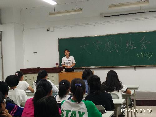 为了使新同学明确大学四年的努力方向,在班主任张蚌蚌老师建议下,工管1709班在9月10日晚6点30分开展了以“大学规划”为主题的班会。