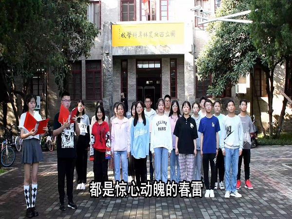 朗诵一首爱国诗歌。9月30日下午,伴着和煦明媚的阳光,全班同学相聚于古朴的三号教学楼前,以最饱满的热情和满心对祖国母亲的热爱一齐朗诵爱国诗歌—《祖国万岁》。“祖国万岁,一声最响亮的赞美,我生命里的赞歌,我精神中的光辉”同学们敬重地挥荡手中紧握的国旗,眼眶中盈满了热泪,激昂的齐颂声于葱郁茂密的教稼园林中久久回荡。青年们用诗歌讴歌了党的伟大领导,向中国共产党成立100周年、新中国成立72周年献礼!
