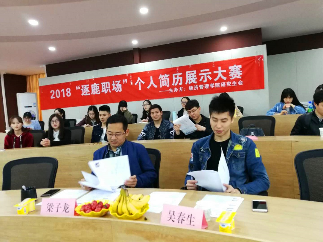为切实提升德赢官网研究生简历制作水平,增强就业竞争力,展示自我才能,交流求职经验,4月14日下午在经管学院301会议室成功举办“逐鹿职场”个人简历展示大赛,经管学院2016级梁子龙、研究生辅导员吴春生应邀担任本次比赛评委。