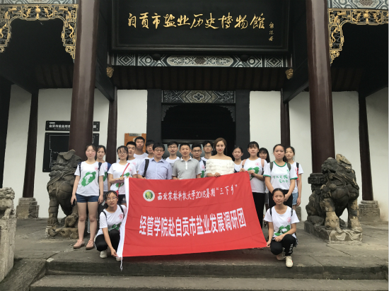 自贡市盐业历史博物馆由邓小平等同志倡议创办,由郭沫若题写馆名,是中国唯一收集、研究和陈列盐业历史文物的科技史专业博物馆,同时也是全国爱国主义教育基地、四川省科普教育基地。为了解四川省自贡盐业的发展起源,初步学习井盐生产流程,7月18日,西北农林科技大学经管学院赴自贡市盐业发展调研团在马克思主义学院张龙老师的带领下,到自贡市盐业历史博物馆展开调研工作。