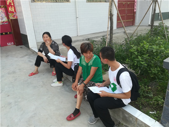 7月18日,团队来到新型现代化农业生产蓬勃的杨陵区揉谷镇,尽管天气异常炎热,队员们仍秉持“诚朴勇毅“的校训,挨家挨户,有礼貌、耐心地为村民解释来意并认真严谨的进行调研。